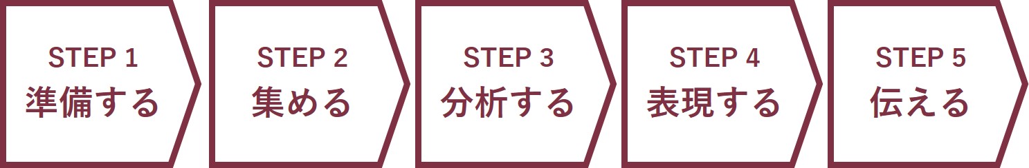見返してみれば、当たり前のことでした。それが次のビジネスデータ分析の5ステップになります。