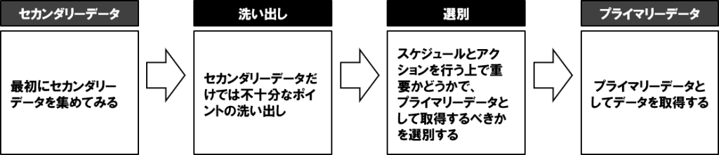 限られた時間の中で、どのようなデータをプライマリーデータとして取得するのかを決めておく必要があります。