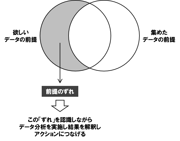 先ほども言いましたが、集めたいデータの前提と集めたデータの前提はずれます。