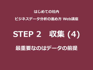 集めるデータのイメージが付いたら、次にデータを集めなければなりません。 データ集める際にデータ品質が高いのが理想です。データ品質が低いと、後々のデータ分析やアクションなどに悪い影響を及ぼします。 データ品質を決めるのは、 … 続きを読む STEP 2(収集)その4|最重要なのはデータの前提