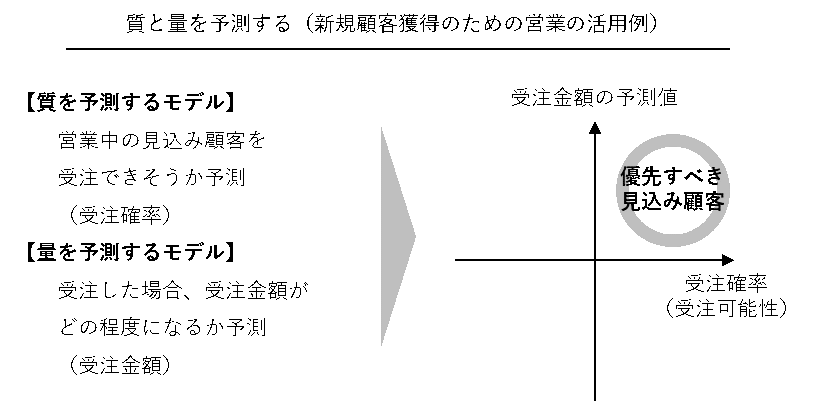 - 「起こるかどうか」を予測(例:受注するかどうか) → 質を予測するモデル