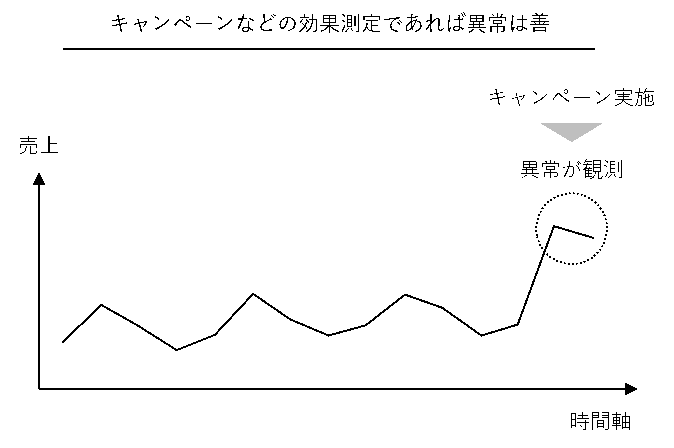 例えば、キャンペーンの目的として一時的な売上アップがあるならば、そのキャンペーン期間中の売上は異常値になります。もし、売上が異常なぐらいアップしなければ、そのキャンペーンは失敗でしょう。