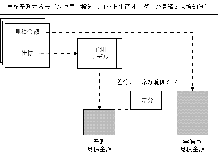 例えば、量を予測するモデルであれば、目的変数として「見積金額」としモデルを構築することで、見積金額のミスを検知することができます。