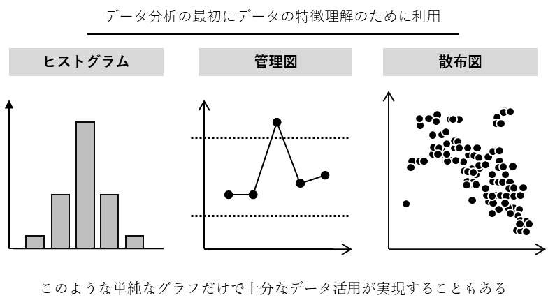 前回お話ししたヒストグラムや管理図を含め、散布図などだけで十分にデータ活用できることも多いです。