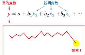 通常は、注目すべき指標である「目的変数Y」を予測し、その予測値と実測値に顕著な乖離がある場合に、異常と判断をします。