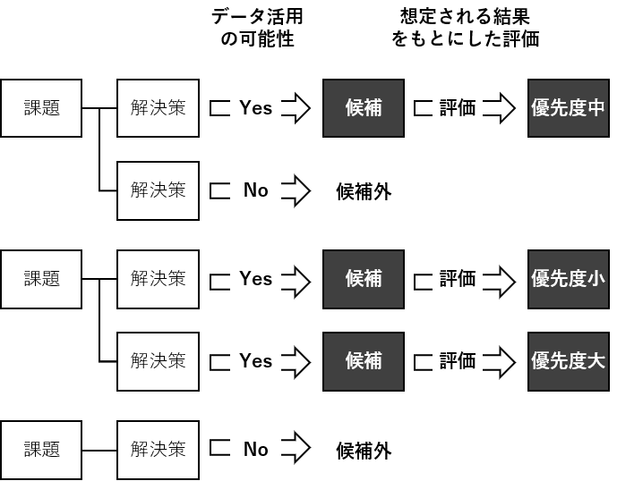つまり、お困りごと(問題)やその原因(要因)、課題が明確になっても、データを活用したほうがいいかどうかは分かりません。