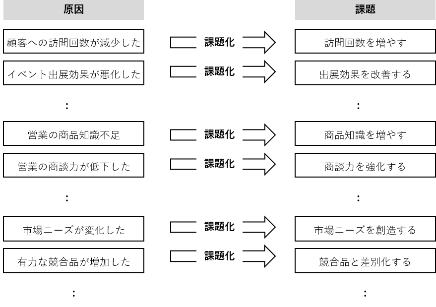 これが「課題」で、原因を課題と見なすことを「課題化」と言います。