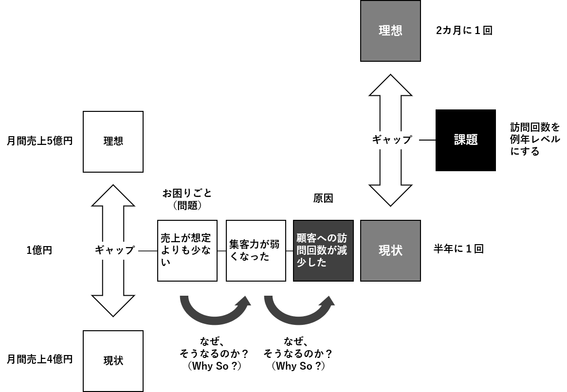先ほど、【3】の「原因(要因)の課題化」もギャップ分析であることに言及しました。