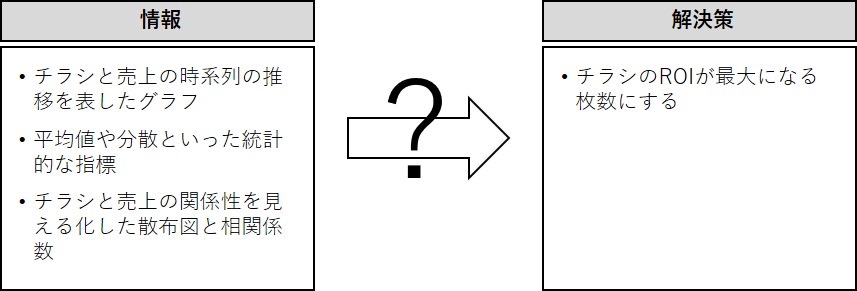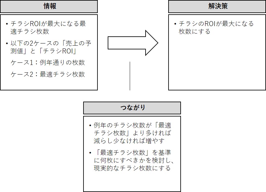 「解決策」(アクション)は「チラシのROIが最大になる枚数にする」です。