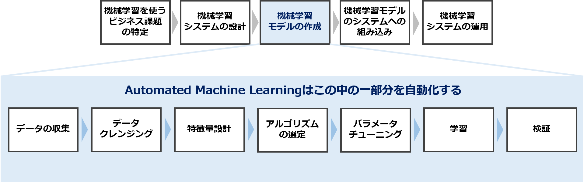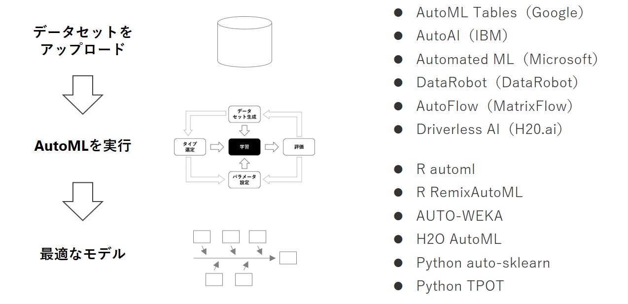 AutoML(Automated Machine Learning)とはその名のとおり、機械学習の一部の手順を自動化したものです。