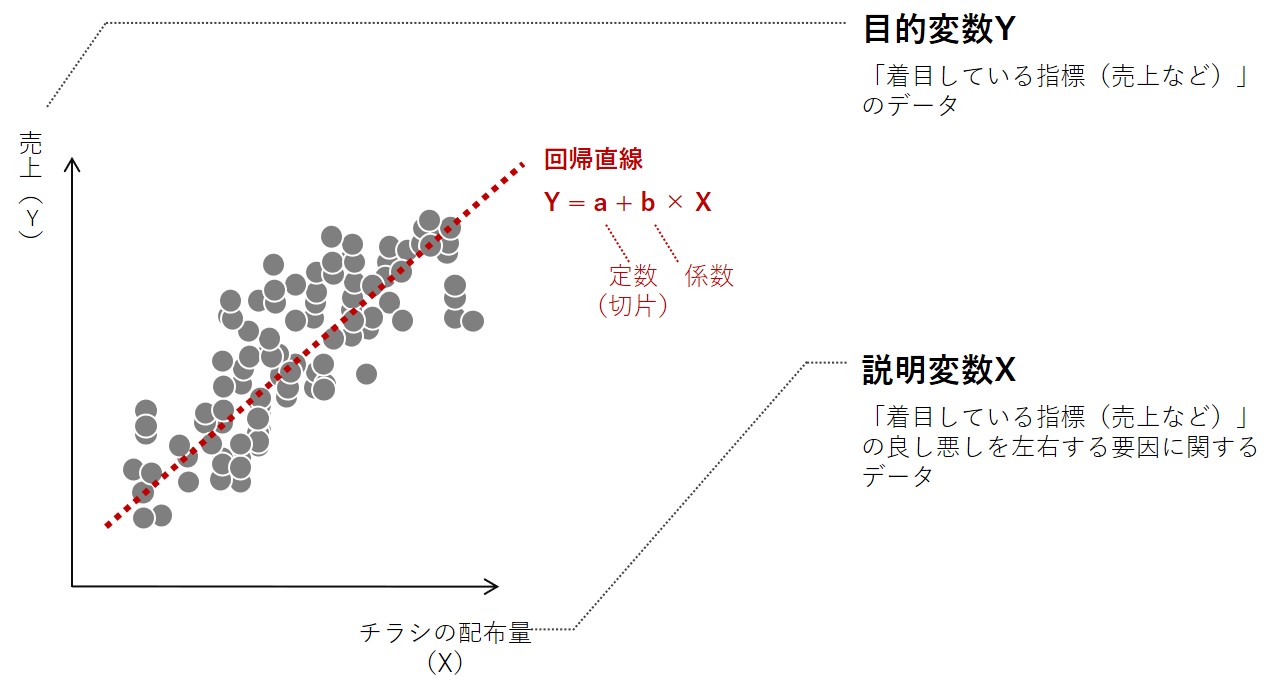 目的変数Yとは、着目している指標で、問い合せ者数や購入者数、購入金額などです。