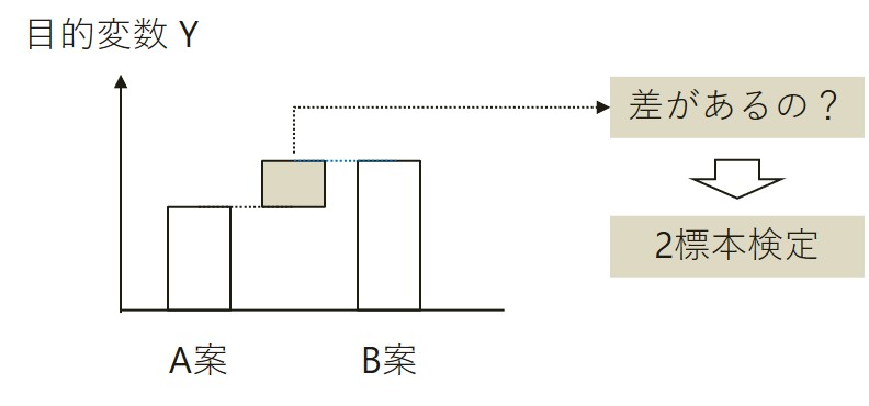 従来は、2標本検定(例:zスコア、t検定)という統計的な手法を使うことが多く、A群とB群の目的変数Yを比較するだけという感じでした。