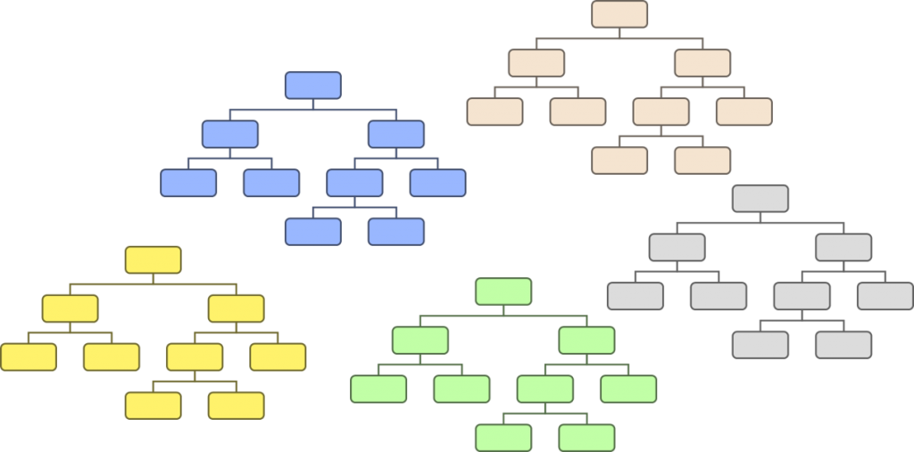 「決定木(ディシジョンツリー)」を、たくさん作って予測に活かそうという数理モデル(アルゴリズム)が、ランダムフォレストという数理モデル(アルゴリズム)です。