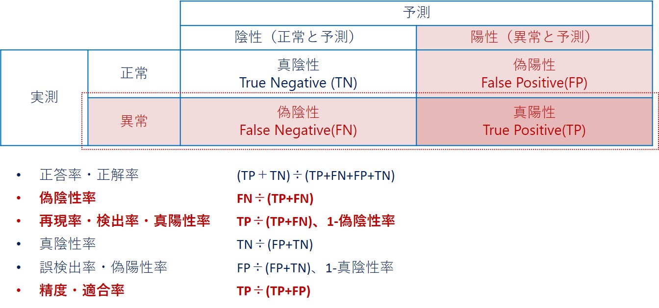 通常、異常検知の場合には「偽陰性率」を優先する場合が多いようです。