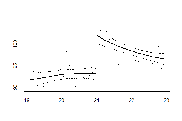 パラメトリック回帰不連続デザイン(RDD)分析と違い、回帰式の関数の形が明確には分かりません。