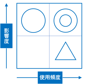 先ほどの「使用頻度」と合わせると、次にようなマップを描けると思います。