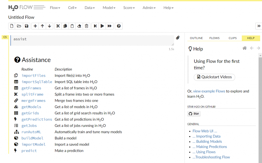 その中に、ノンコードで機械学習モデルを構築することのできるH2O FlowというGUIでモデル構築できる環境が用意されています。
