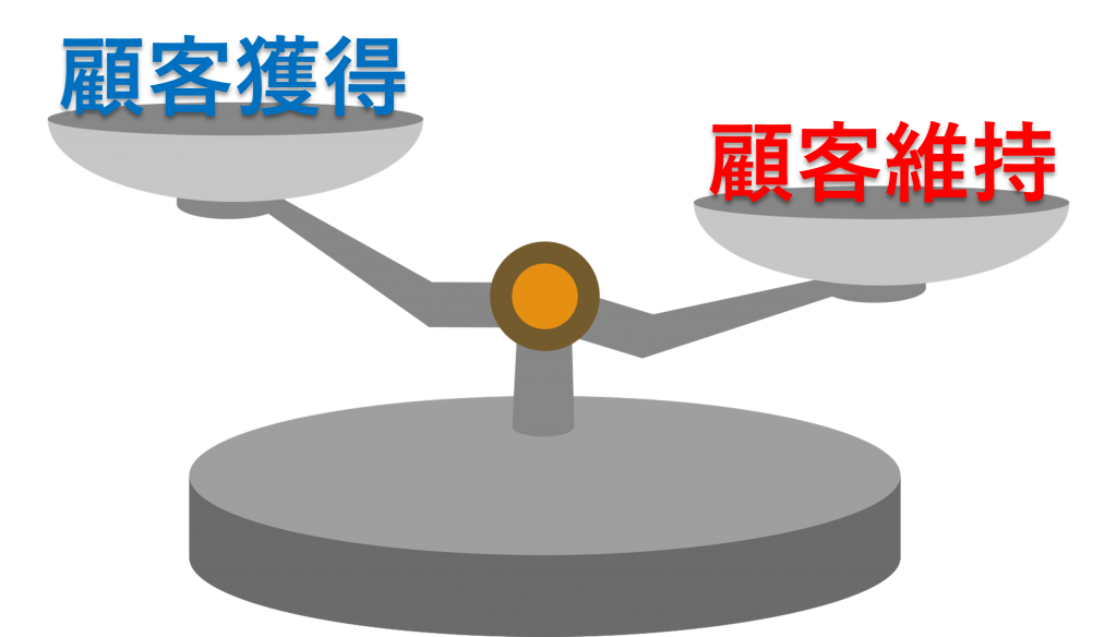 顧客獲得よりも顧客維持へ比重をかけるとは、単に既存顧客の継続に注力するというだけでなく、顧客獲得時も顧客維持を念頭に注力する、ということになります。