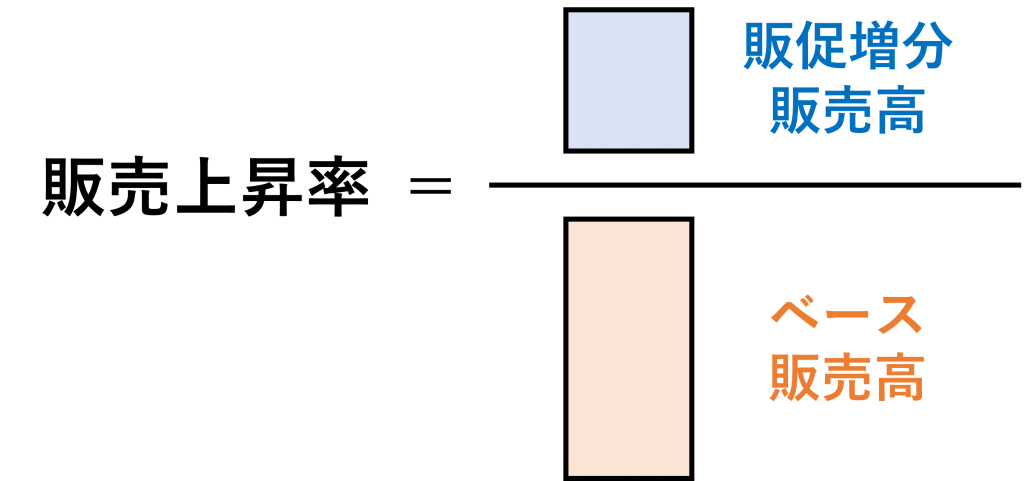 - 販売上昇率 = 販促増分販売高 ÷ ベース販売高