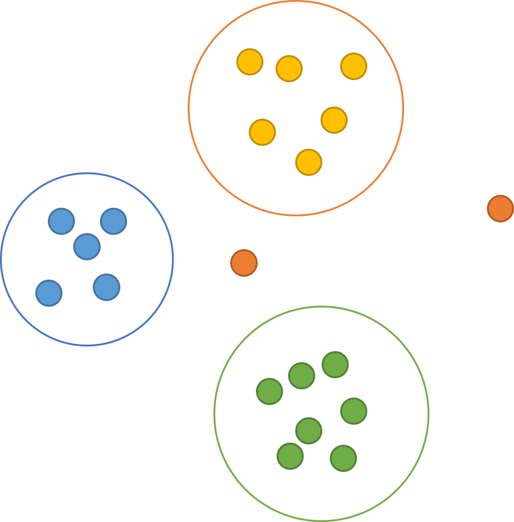 クラスタリングすると異常値はどうなるかというと、極端な場合、どのグループにも所属しません。要は、異常値だけのN=1のクラスターが出来上がります。