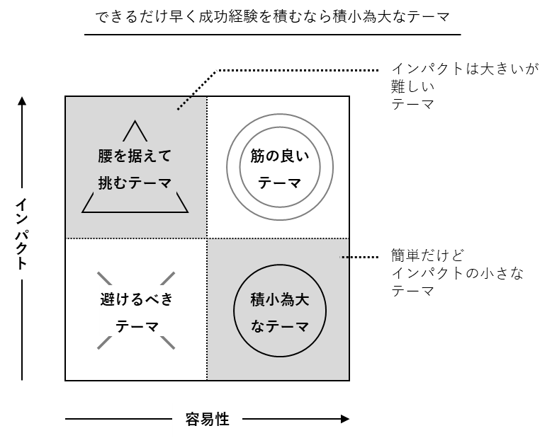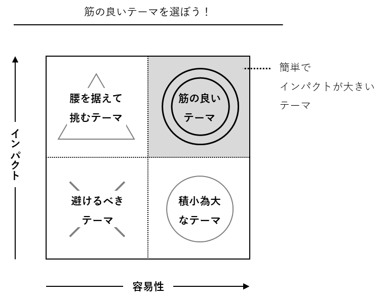 「筋の良いテーマ」とは、「簡単でインパクトが大きい」テーマです。