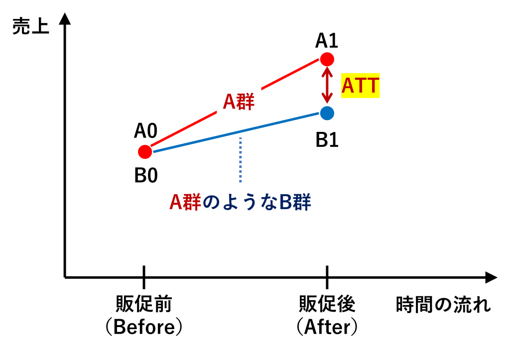 ATT=A群(状況A)のBefore&Afterの差ーB群(状況B)のBefore&Afterの差