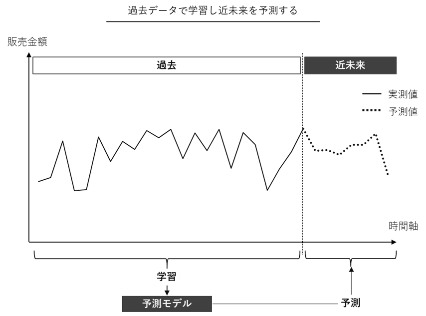予測対象期間は、遠い未来(5年後や10年後、100年後など)ではなく近い未来(数日後、数週間後、数カ月後、1年後など)のケースが多いです。