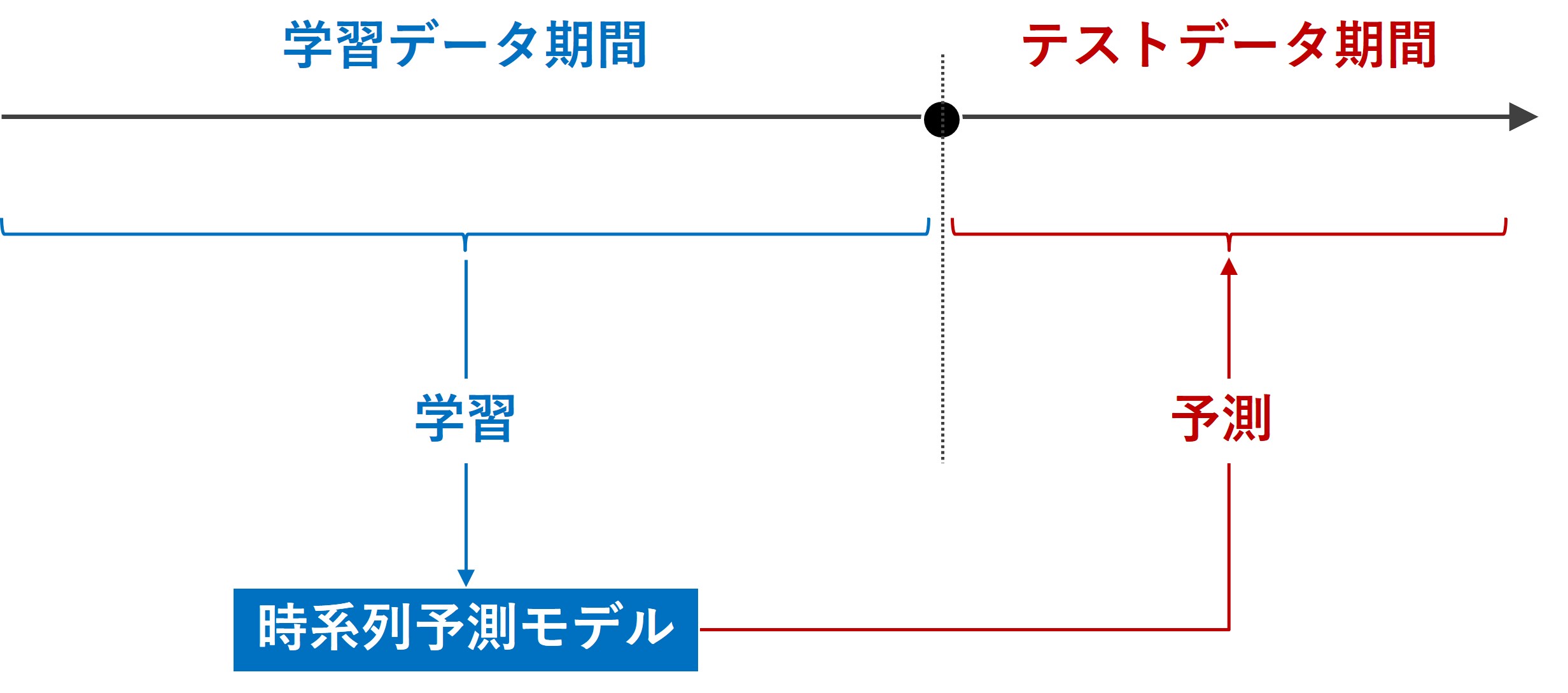 時系列データでは、特定の時点までのデータを学習用に、その後のデータをテスト用に使用するのが一般的です。