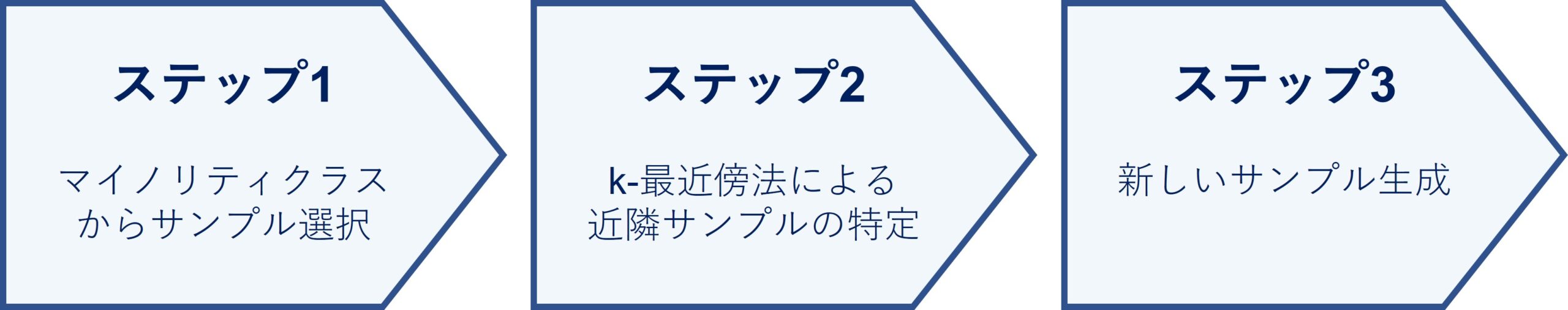 SMOTEがどのように機能するのかを具体的なステップに分けて解説します。