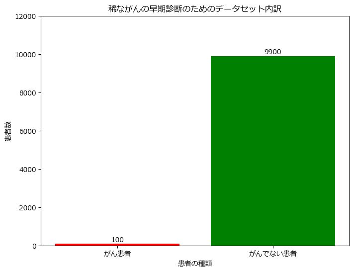 データ不均衡の問題を理解するために、医療分野における疾患診断の事例を考えてみましょう。ここでは、ある稀ながんの早期発見を目的とした研究を想定します。