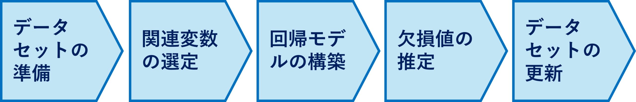 - 欠損値の推定: 構築した回帰モデルを使用して、欠損値を持つデータポイントに対して値を推定します。この推定値は、モデルが示す変数間の関係に基づいて計算されます。