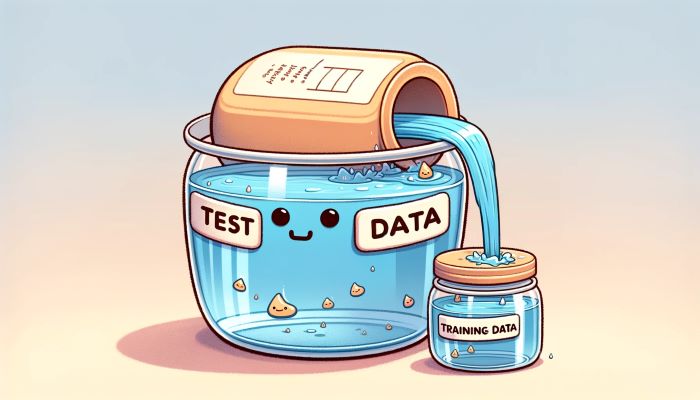 例えば、モデルのトレーニングプロセス中にテストデータからの情報が不正に使用される現象を指します。