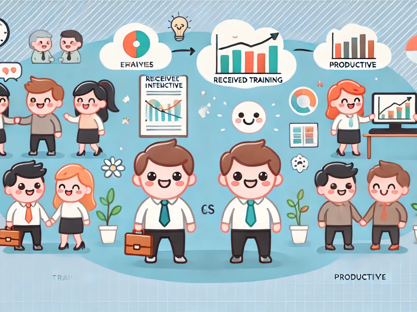 - データ収集: トレーニングを受けた従業員と受けていない従業員の生産性データを収集。