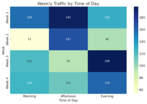 - データを集計し、曜日と時間帯のマトリックスを作成
