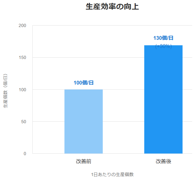 改善前:100個/日(基準値) ↓ 改善後:130個/日(30%向上)