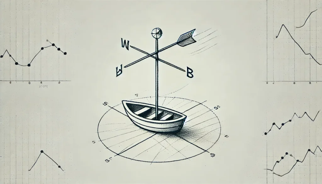 「西からの強風が吹きそうだ」という予測(分析)があれば、帆の向き(マーケティング戦略など)を調整(実験)し、実際にどう進んだか(検証)を確認します。