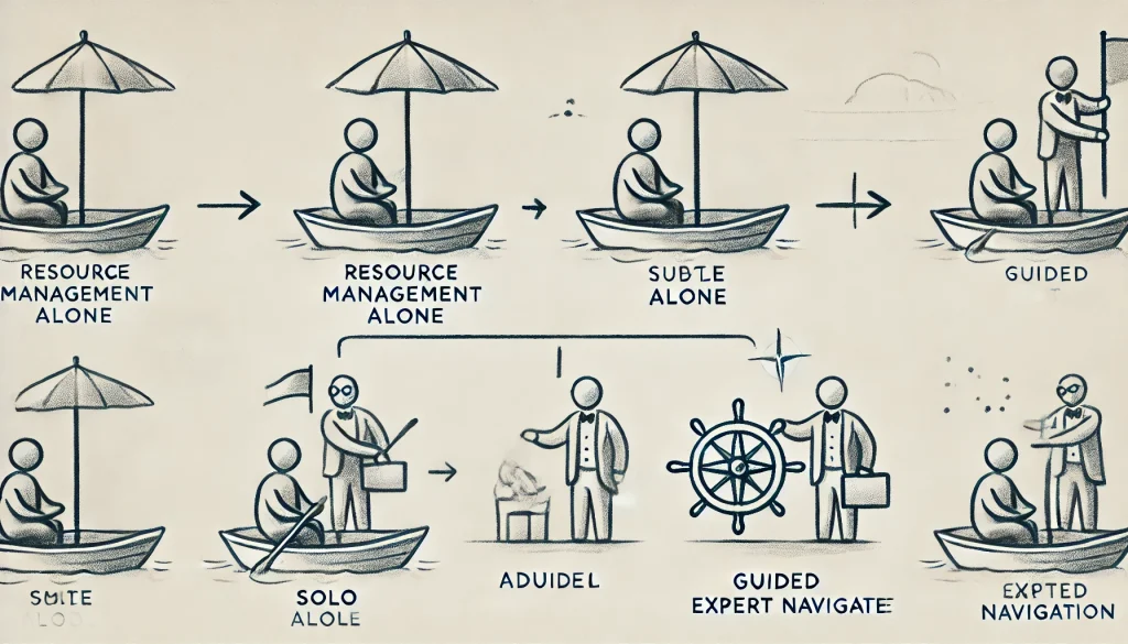 「全部自分でやる」という冒険心あふれる船長(経営者)もいれば、「専門家に任せよう」という賢明な判断をする提督もいます。