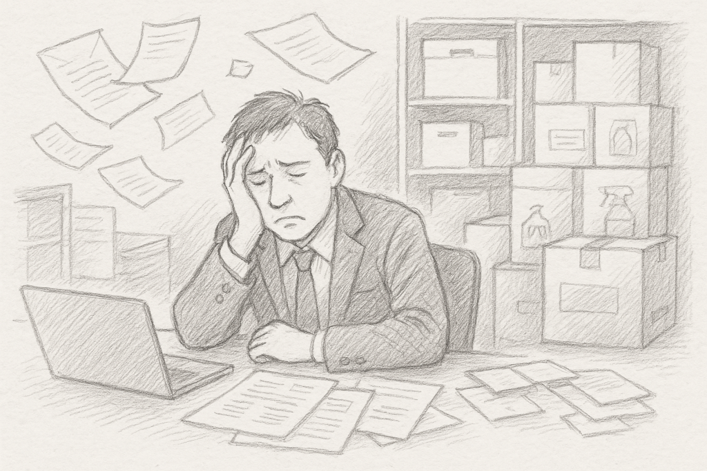 東京都内で日用雑貨の卸売業を営むタナカ商事株式会社(仮名)では、創業以来30年間、受発注データが紙の伝票やメールの履歴に散らばり、どの商品がいつどれだけ売れたのか一元的に把握できない状態が続いていました。