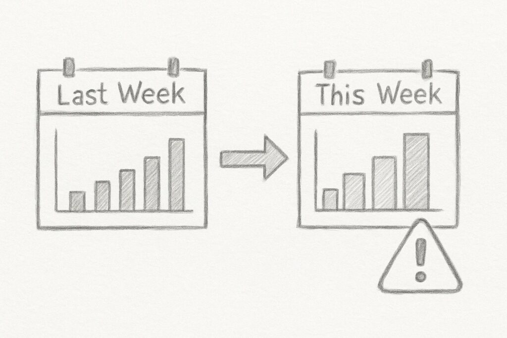 単純な前週比較ではなく、標準偏差やZ-スコア、パーセンタイルを用いた予測範囲の作成により、時間帯や曜日による自然な変動を考慮した監視が可能になります。
