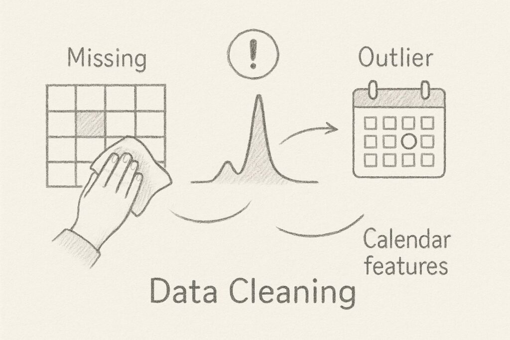 センサー障害や手入力ミスが主な原因ですが、対策として品質ゲートを設定し、日次で異常件数をアラートする仕組みを構築します。