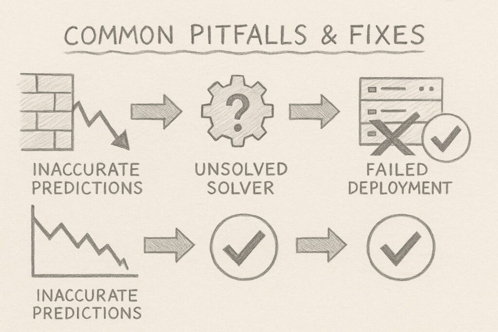 精度、計算時間、可行率を常時モニタリングし、閾値を超えたら自動リカバリを走らせる体制が不可欠です。