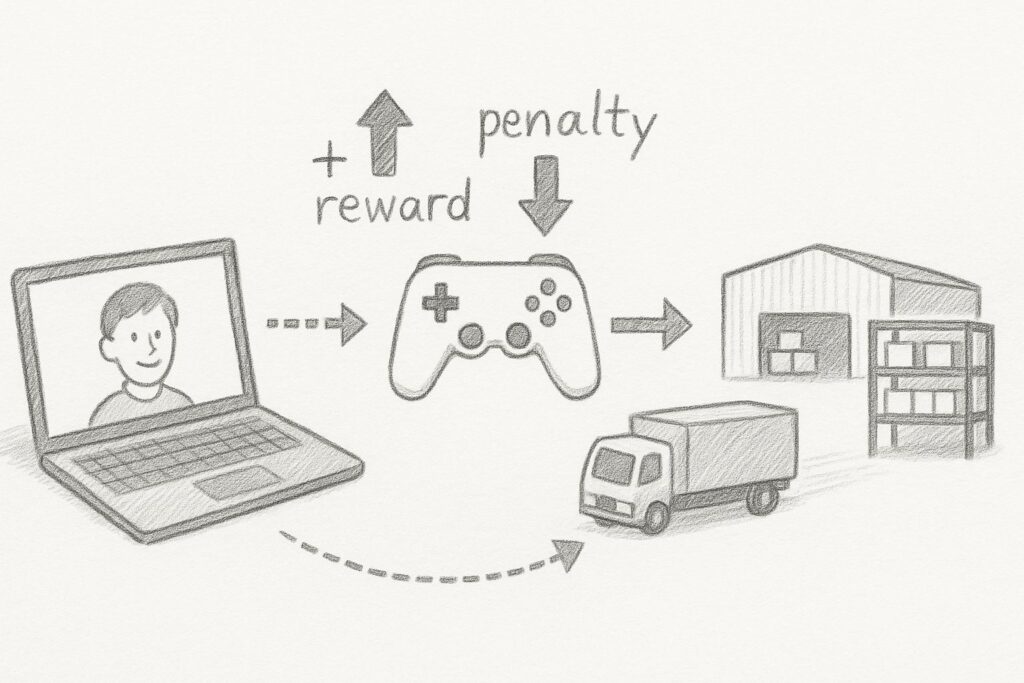 | 成功体験(報酬) | 欠品を出すことなく、かつ少ない在庫で販売機会を最大化できたら、AIにプラスの「報酬」を与えます。 |