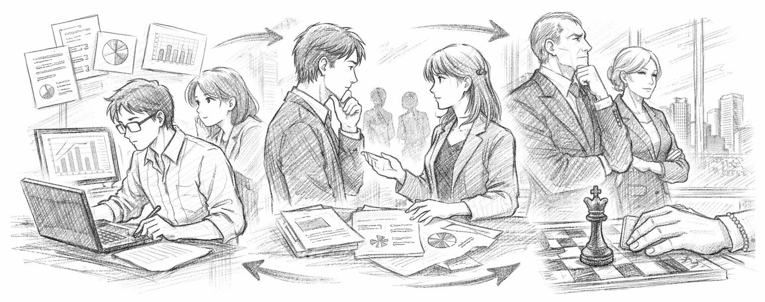まず押さえておきたいのは、組織において「分析する人」と「判断する人」は、ほぼ確実に別であるという事実です。