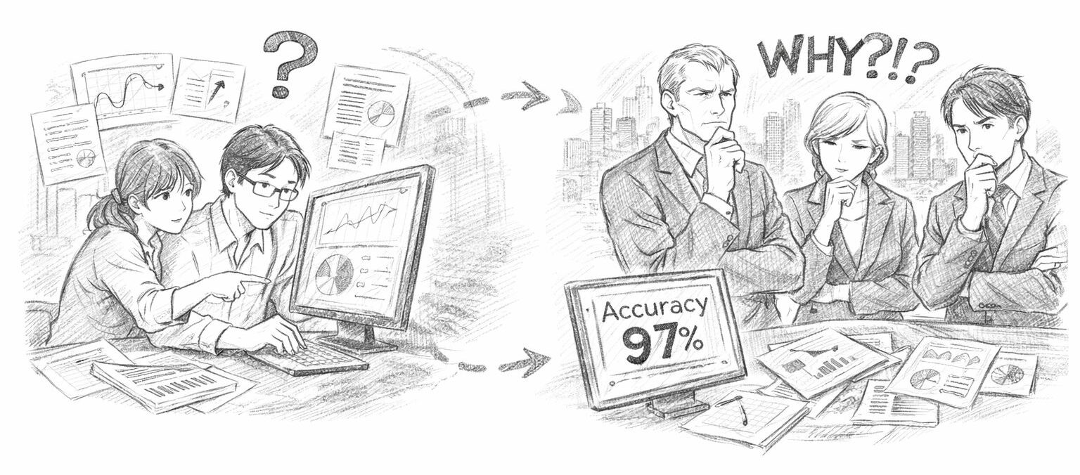 説明できない高精度モデルは、判断のリスクを一方的に押し付ける存在になります。