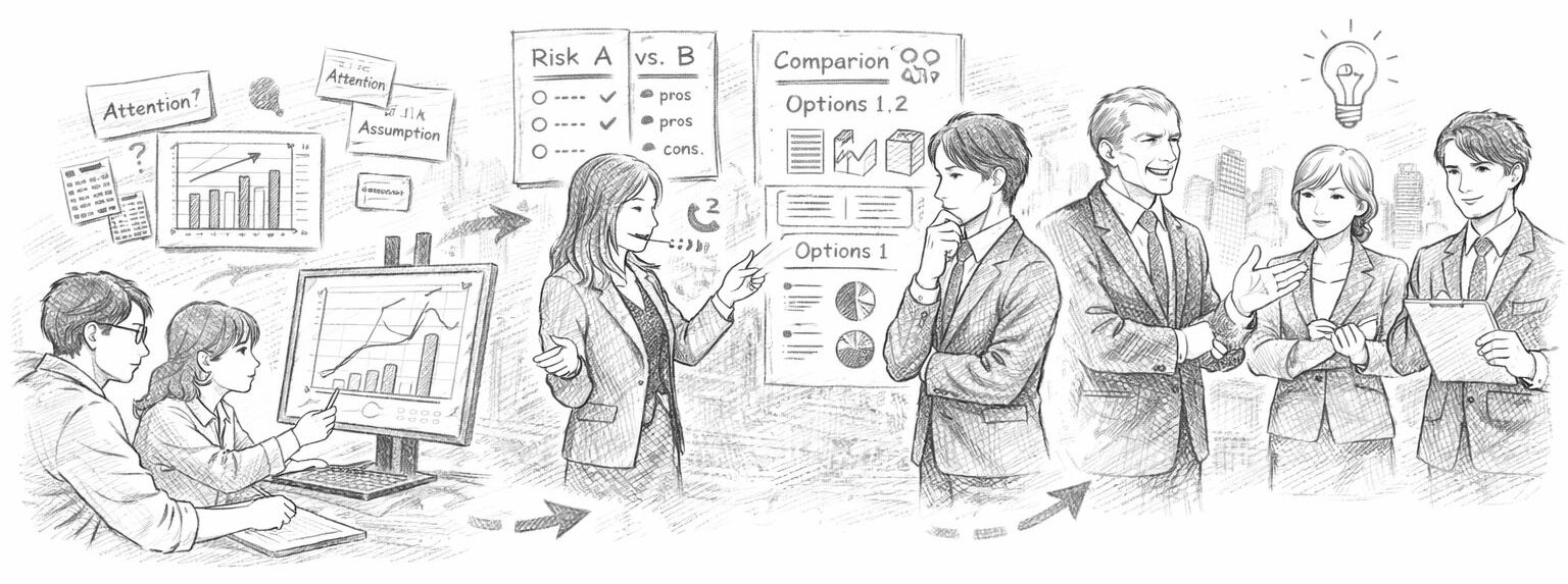 分析担当にとっては「正しい結果」であっても、判断する側にとっては「責任を取れる材料」になっていないことがあります。