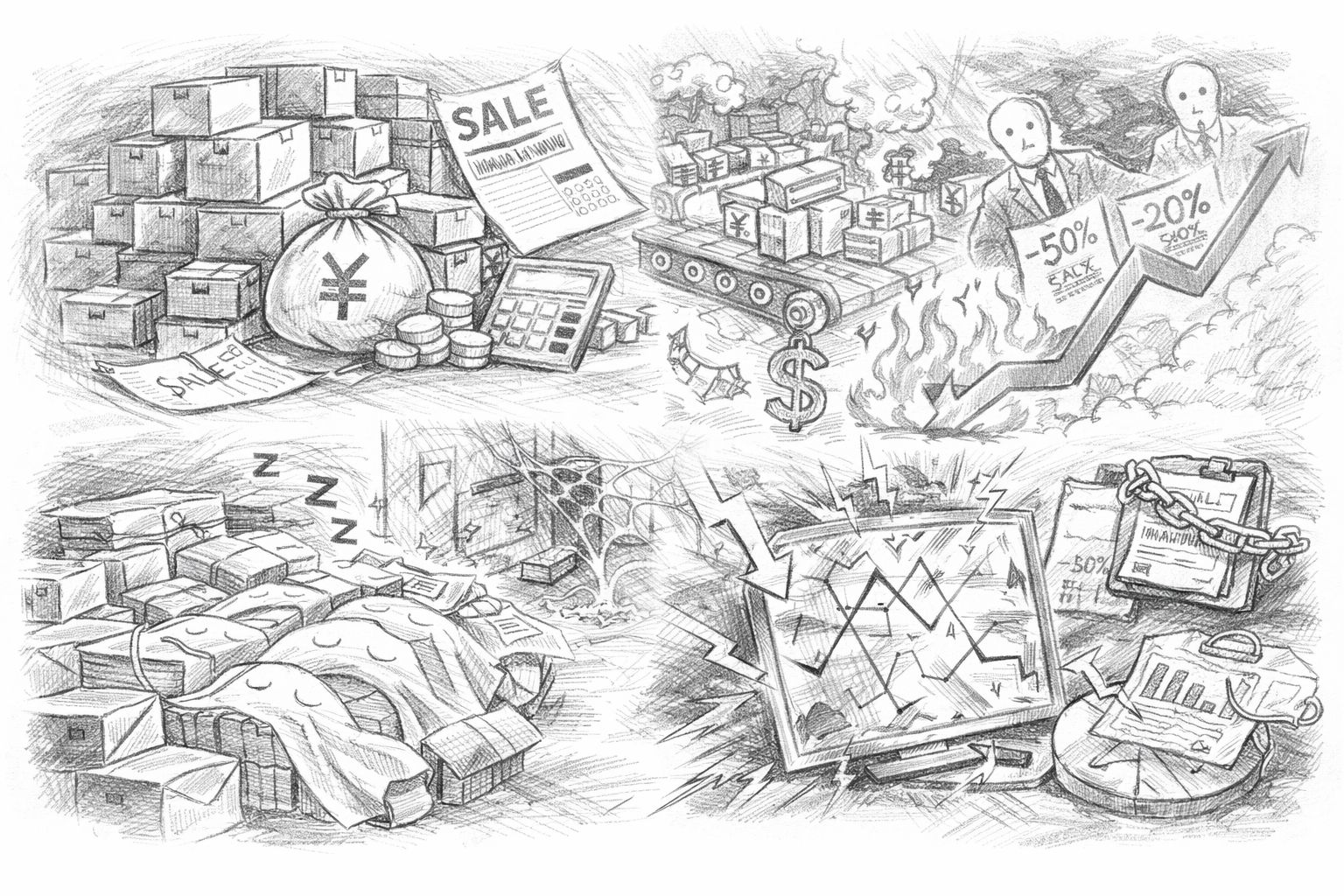 過剰在庫の直接的なコストだけでも、保管費用、資金が眠ることで生まれる機会損失、値引き処分による利益率の低下があります。