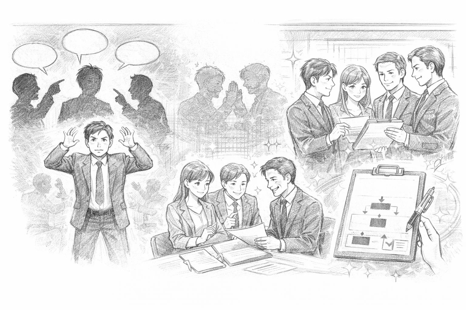 技術的な話ではなく、組織の合意形成の話です。