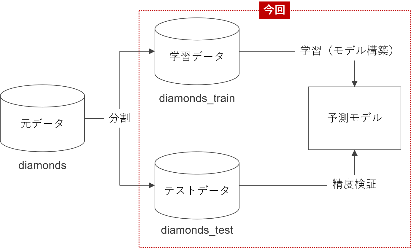 - 予測モデルでテストデータ(diamonds_test)の目的変数を予測
