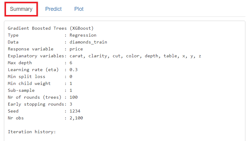 「Summary」に学習(構築)した予測モデルの概要が表示されます。