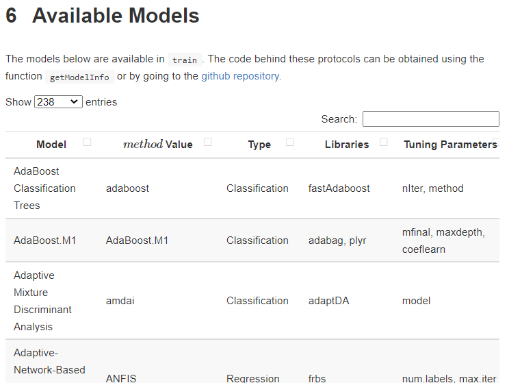 https://topepo.github.io/caret/available-models.html